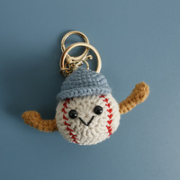 Cute Crochet Positive Energy Baseball Toy Amigurumi Kawaii Baseball Keychain Wool Knit Sports Team Bag Charms Mini Toys for Boy